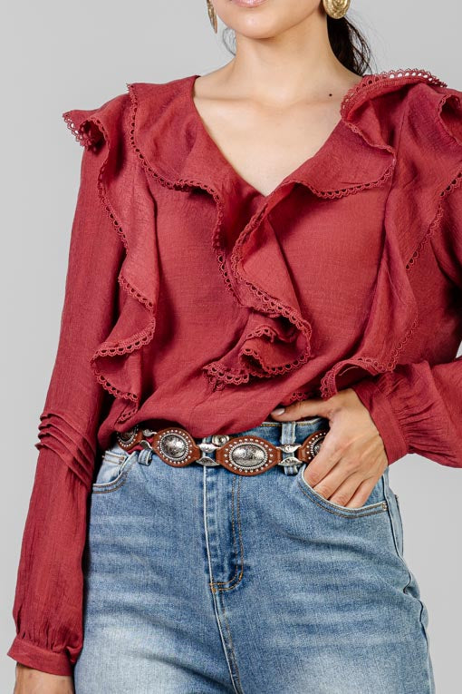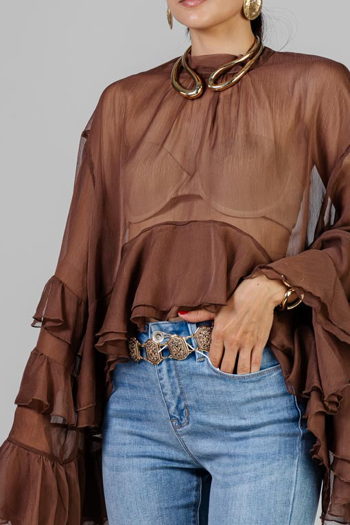 AgotadoBLUSA CAFE OLANES