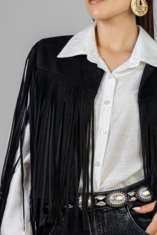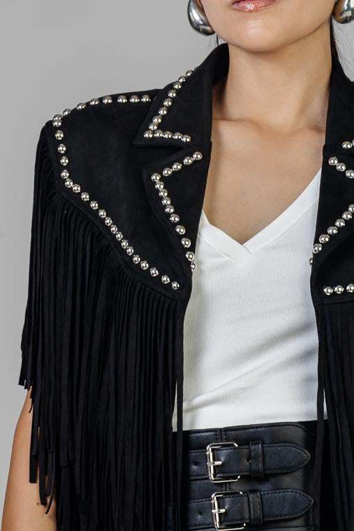 AgotadoCHALECO NEGRO GAMUZA FLECOS