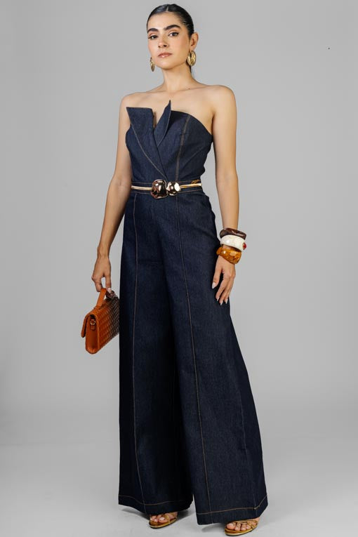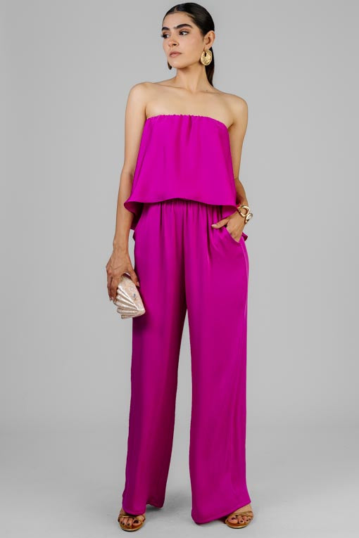 AgotadoPALAZZO STRAPLESS CON CINTO