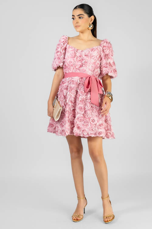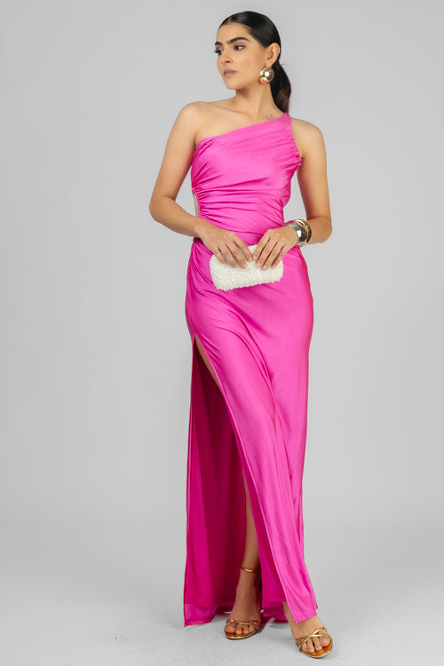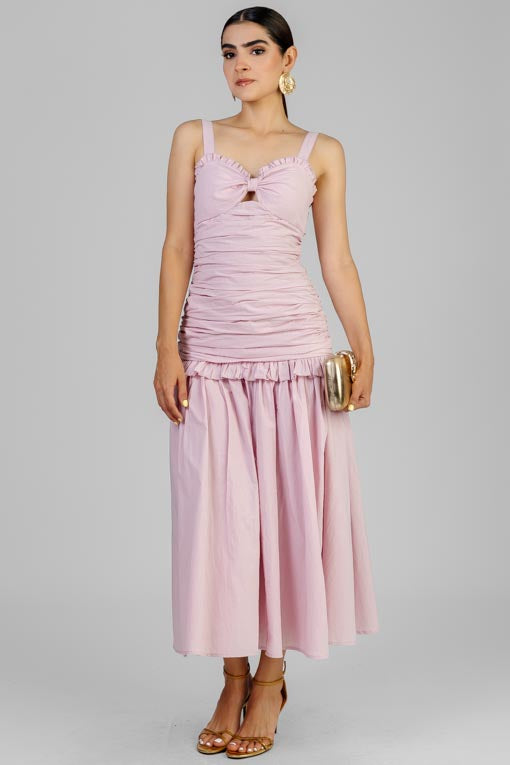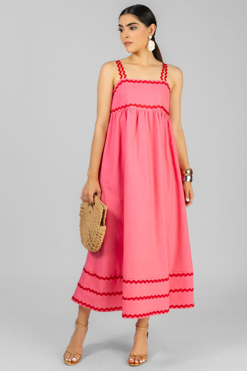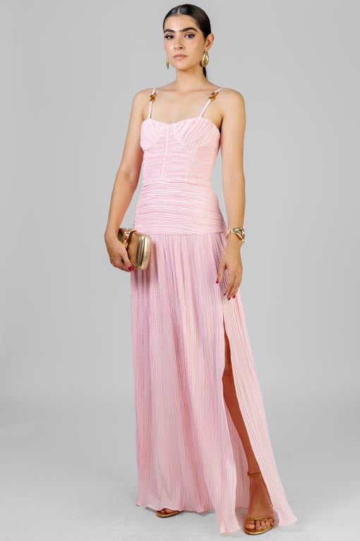 OFERTAVESTIDO ROSA OLANES PLISADOS