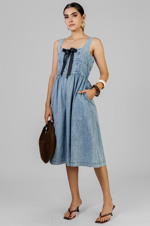 AgotadoVESTIDO DENIM MOÑO NEGRO