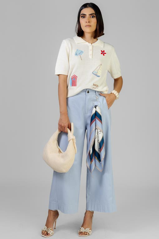 Blusa tipo polo en tejidosuave con un aire relajado. El diseño bordado con motivos náuticos le da personalida y un toque divertido sin perder elegancia. Leva cuello clásico con botones y manga corta que la hacen fresca y muy fácil de combinar.