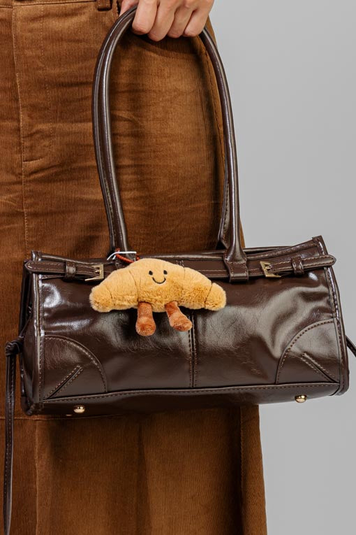 Bolsa de hombro estilo clásico, incluye llavero peluche en forma de croissant sonriente