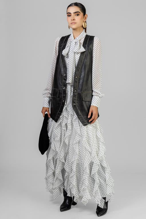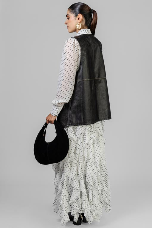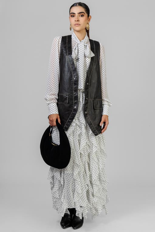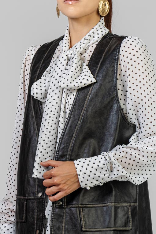 Chaleco vinipiel, botones al frente, abertura por la espalda