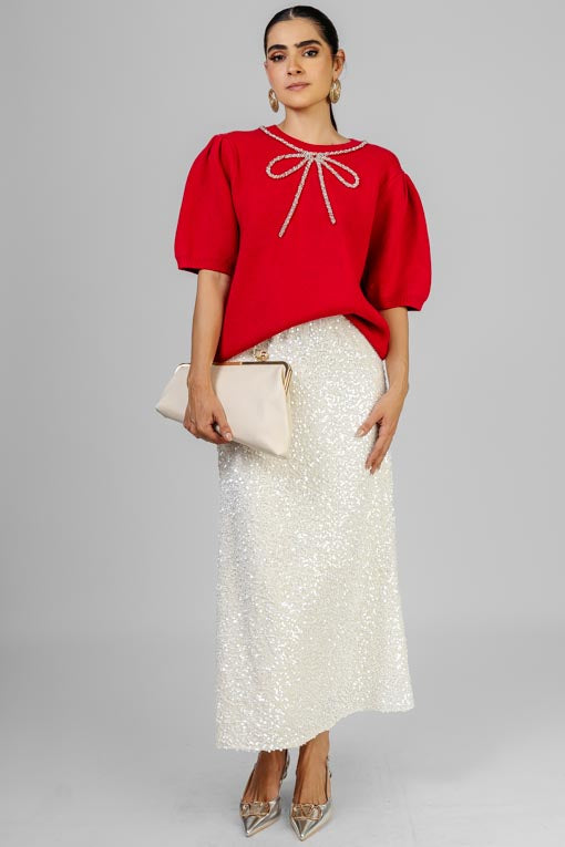 FALDA LENTEJUELA BLANCA