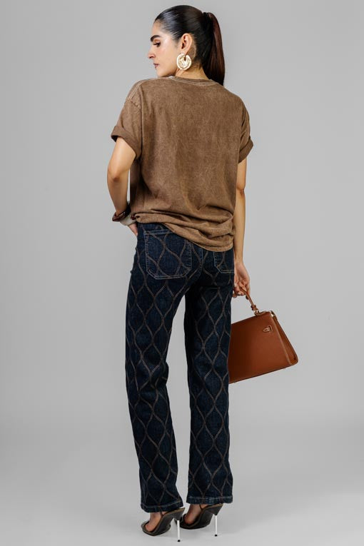 Playera esscote redondo, manga corta, detalle de ilustración al frente, corte bajo recto