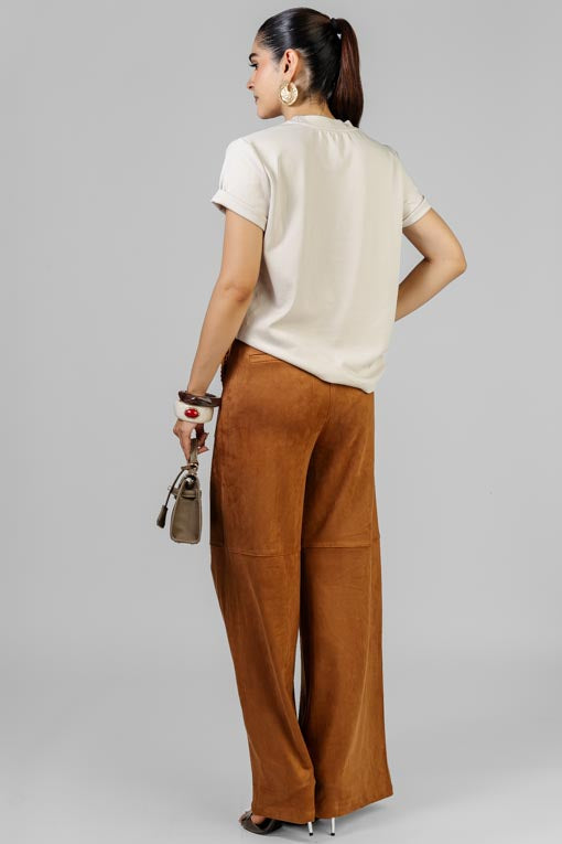 Playera escote redondo, manga corta, detalle de bordados al frente, corte bajo recto