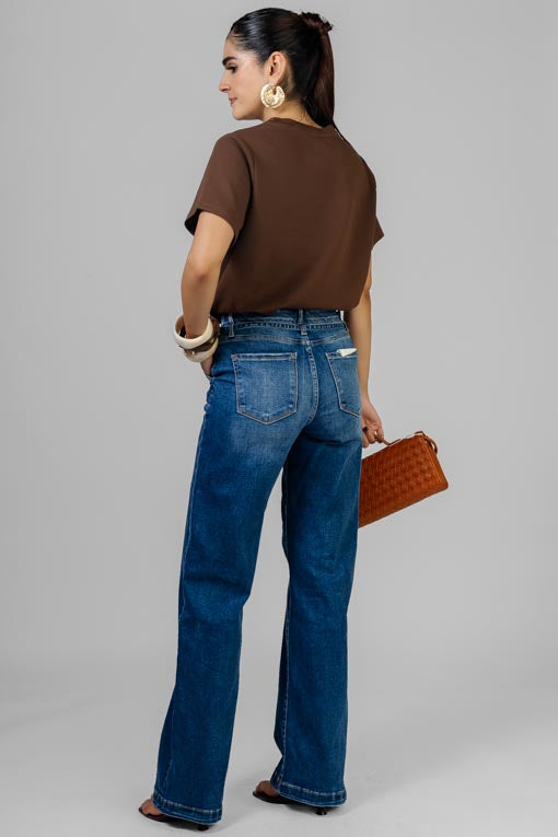 Playera escote redondo, manga corta, detalle de ilustración con perlas al frente, corte bajo recto