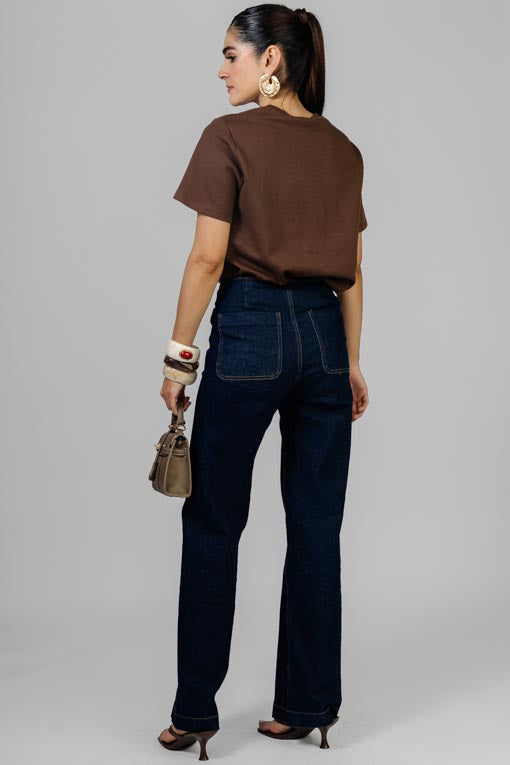 Playera escote redondo, manga corta, detalle de bordado al frente