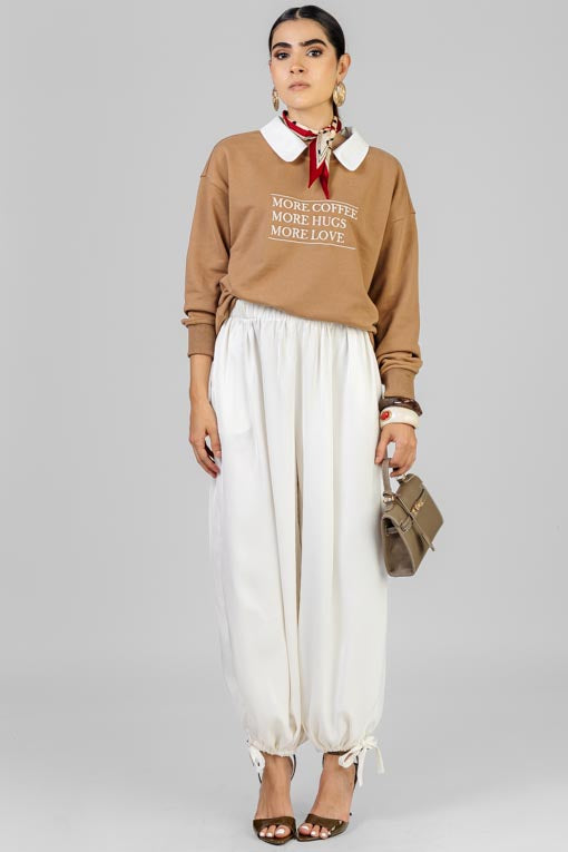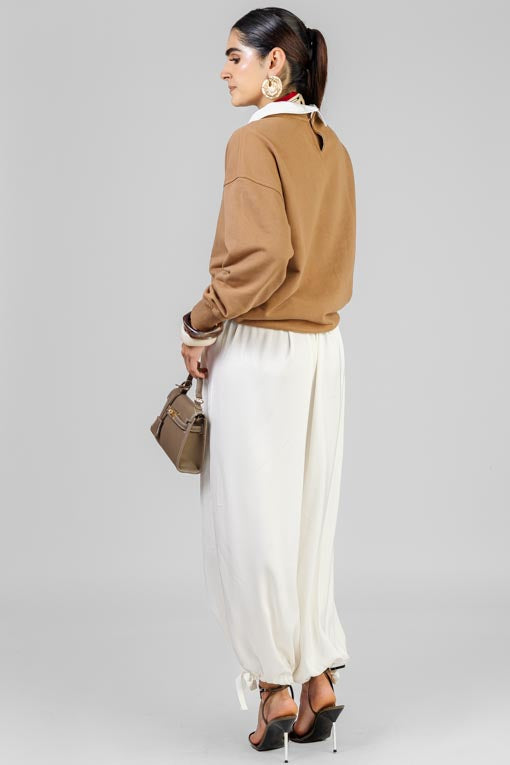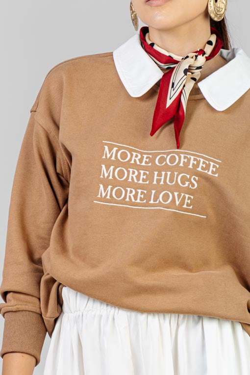Sudadera escote redondo, detalle de cuello y botón por la espalda, manga larga con puños de cardigan, corte bajo recto