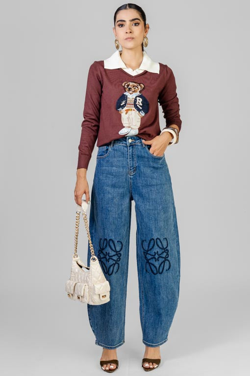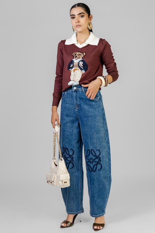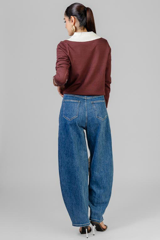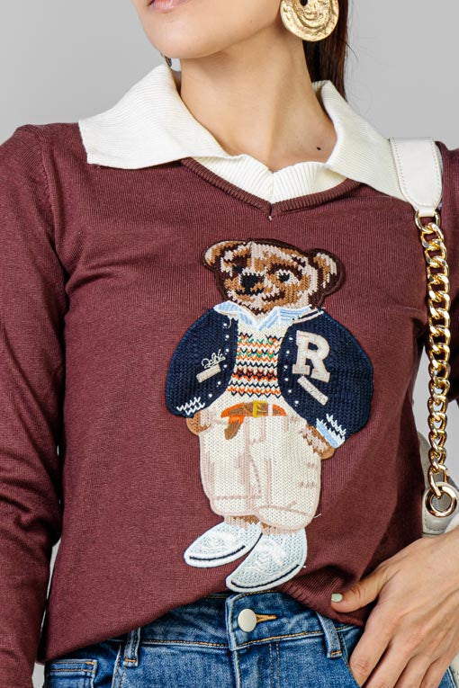 Suéter tejido ligero, cuello y escote en V, manga larga, corte bajo recto