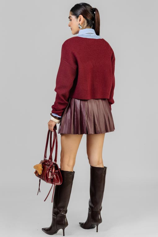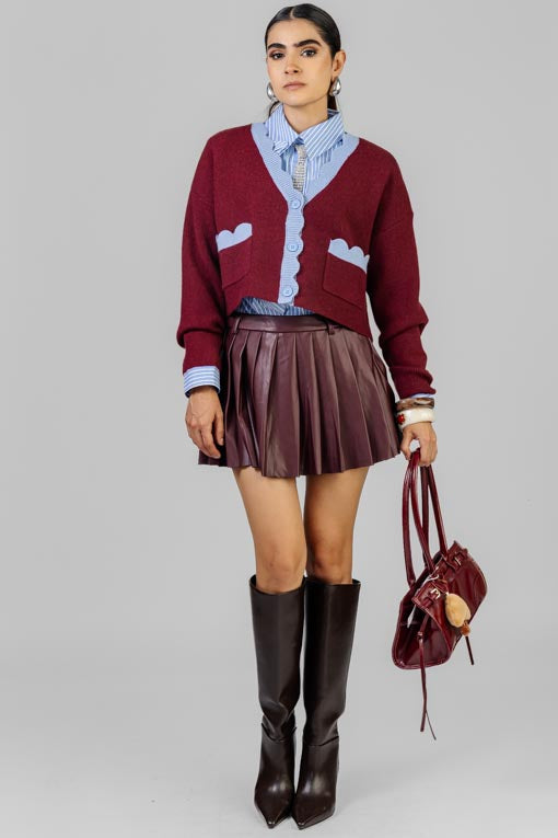 Suéter tejido botones al frente, detalle de contraste de color, bolsas de parche, manga larga