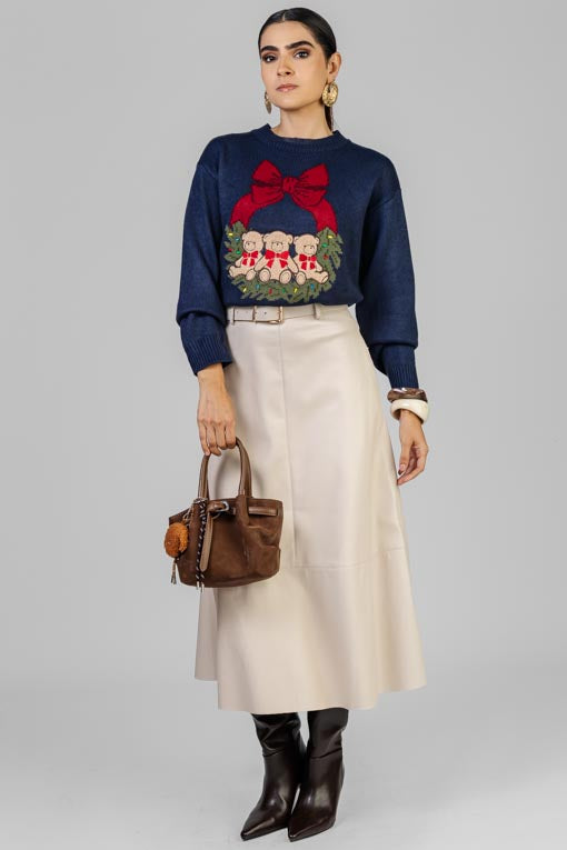 Suéter escote redondo, manga larga, detalle de ilustración al frente, corte bajo recto