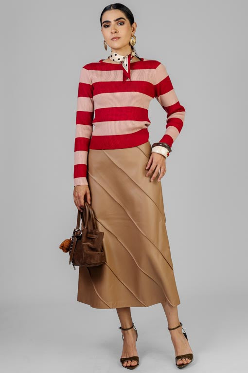 sueter tejido ligero, escote redondo, manga larga, corte bajo recto
