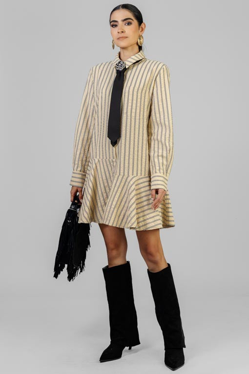 VESTIDO BEIGE RAYAS
