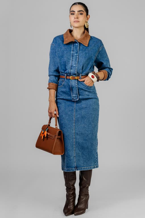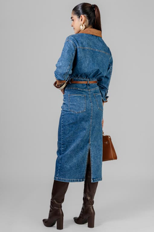 VESTIDO MEZCLILLA CUELLO SUEDE